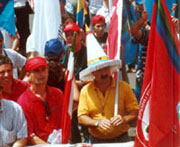 Massa - Migliaia di persone in corteo per un'urgente soluzione dei problemi industriali della provincia di Massa-Carrara e per dire no alla finanziaria del governo. Solidarietà del corteo agli 8 denunciati degli scontri del dicembre 2003.